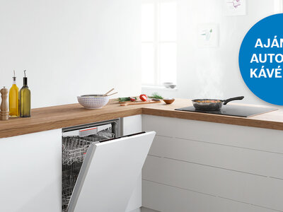 Vásároljon Bosch beépíthető készülékeket – köztük legalább 1 db sütőt, főzőlapot és mosogatógépet – legalább 1.000.000 Ft értékben, és ajándékba adunk egy 220.000 ft értékű** TIS30329RW automata kávéfőzőt.