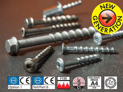 Kifejezetten a kültéri alkalmazások céljára egy teljesen rozsdamentes anyagból (A4) készült csavarral bővült a termékpaletta. Ez az újítás, valamint a fejgeometriák sokfélesége a legszélesebb körű alkalmazásokat biztosítja, mint például korlátok, homlokzatok, konzolok, acélprofilok, daruk, gépészeti berendezések és sok egyéb szerelése. Az ETA 1. jóváhagyási opciónak köszönhetően, amely szerint a csavarok alkalmasak a fej feletti beépítésre és teljesítik a tűzvédelmi követelményeket, jelentősen megnöveli a lehetséges alkalmazási területeket.