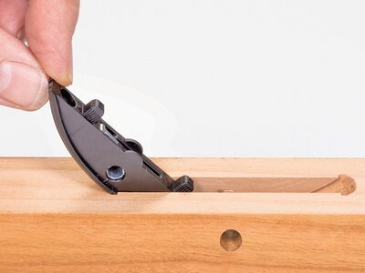 A minimalista 6 mm-es hozzáférési nyíláson keresztül a Clamex P-14 egy kar segítségével szilárdan csatlakoztatható és szétkapcsolható. A Clamex P-14 kiküszöböli a ragasztó szükségességét, minden szögben esztétikus illesztést tesz lehetővé, és ideális a tartós vagy oldható gérkötésekhez is. A Clamex P-14 18 mm anyagvastagságtól kezdődően gérvázas kötéseknél és 15 mm-től kezdődően tompa kötéseknél használható.