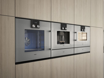 A kávéfőző elegáns, teljesen üvegből készült, antracit színű Gaggenau-ajtóval vagy rozsdamentes acél hátlapú üvegfrontjával tökéletes kiegészítője a 400-as sorozat sütőinek és melegítőfiókjainak. Töltse be a kávébabot, tejet vagy vizet: egy könnyed érintés a TFT érintőkijelzőn, és az ajtó kinyílik.