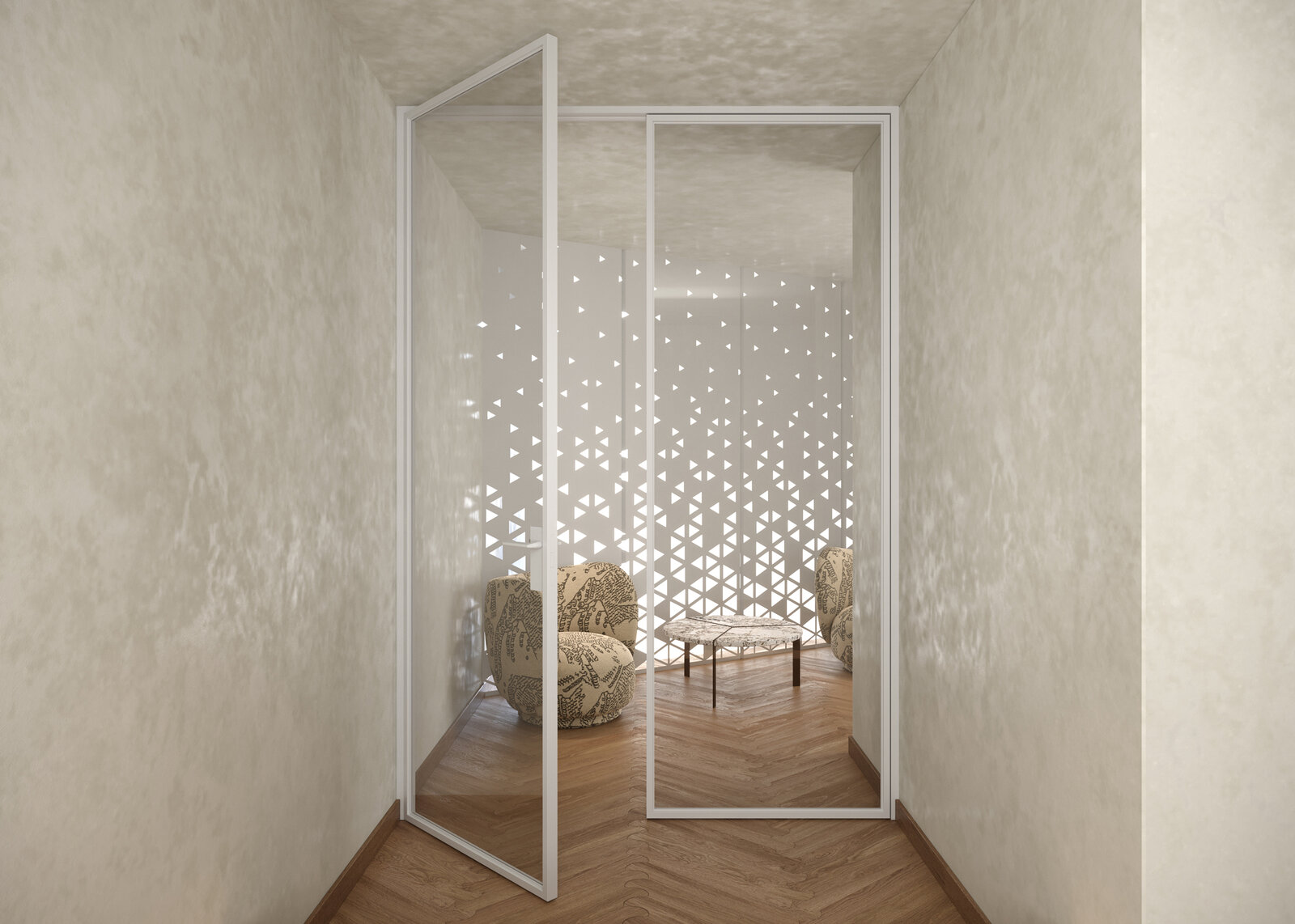 egy alumínium beltéri ajtótok, amelyet úgy terveztek, hogy a falban elrejthető legyen, így az ajtó a falba integrált diszkrét elemmé válik, hogy megfeleljen a nappali design új szabványainak (a Ghost alkalmas fa ajtólapokhoz és „VARIA” kerettel ellátott üvegbetétes ajtólaphoz).