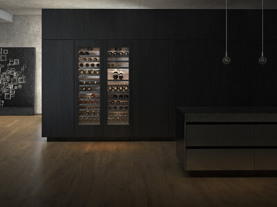 A borhűtőszekrények opcionálisan kaphatók fogantyú nélküli push-to-open vagy pull-to-open funkcióval. Az üvegfront kerete a konyhabútor anyagából vagy rozsdamentes acélból készülhet. A rozsdamentes acél belsőtér, a teljesen kihúzható tölgyfa és az antracit színű alumínium palackpolcokkal elegáns megjelenést garantál, és kellemes hőmérsékletet biztosít értékes borai számára. Akár három független klímazóna is szabályozható a TFT érintőkijelzőn keresztül, a páratartalom pedig tetszés szerint szabályozható. A borokat károsító aromákat és rezgéseket az alacsony rezgésszámú motor és az aktívszenes légszűrő minimálisra csökkenti.