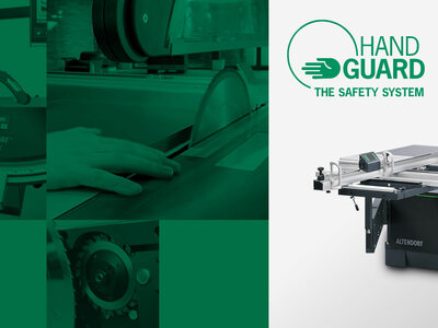 A vállalatcsoport egy fedél alatt egyesíti az Altendorf tolóasztalos fűrészgépeket és a Hebrock élzárógépeket. Ez ideálisan egyesíti a lapmegmunkáló szakma két alapvető megmunkálási területét. Ügyfeleink egyéni kívánságai és igényei képezik a szakma aktív továbbfejlesztésének alapját. A minőség, az előrelátás és a folyamatos innovációk révén az Altendorf a jövőben is megbízható partner lesz. A Hand-Guard rendszerrel a körfűrészek optikai biztonsági rendszere alapfelszerelésként került beépítésre. A veszélyeket még az érintés előtt észleli, és a fűrészlap gyors leengedéssel eltűnik.