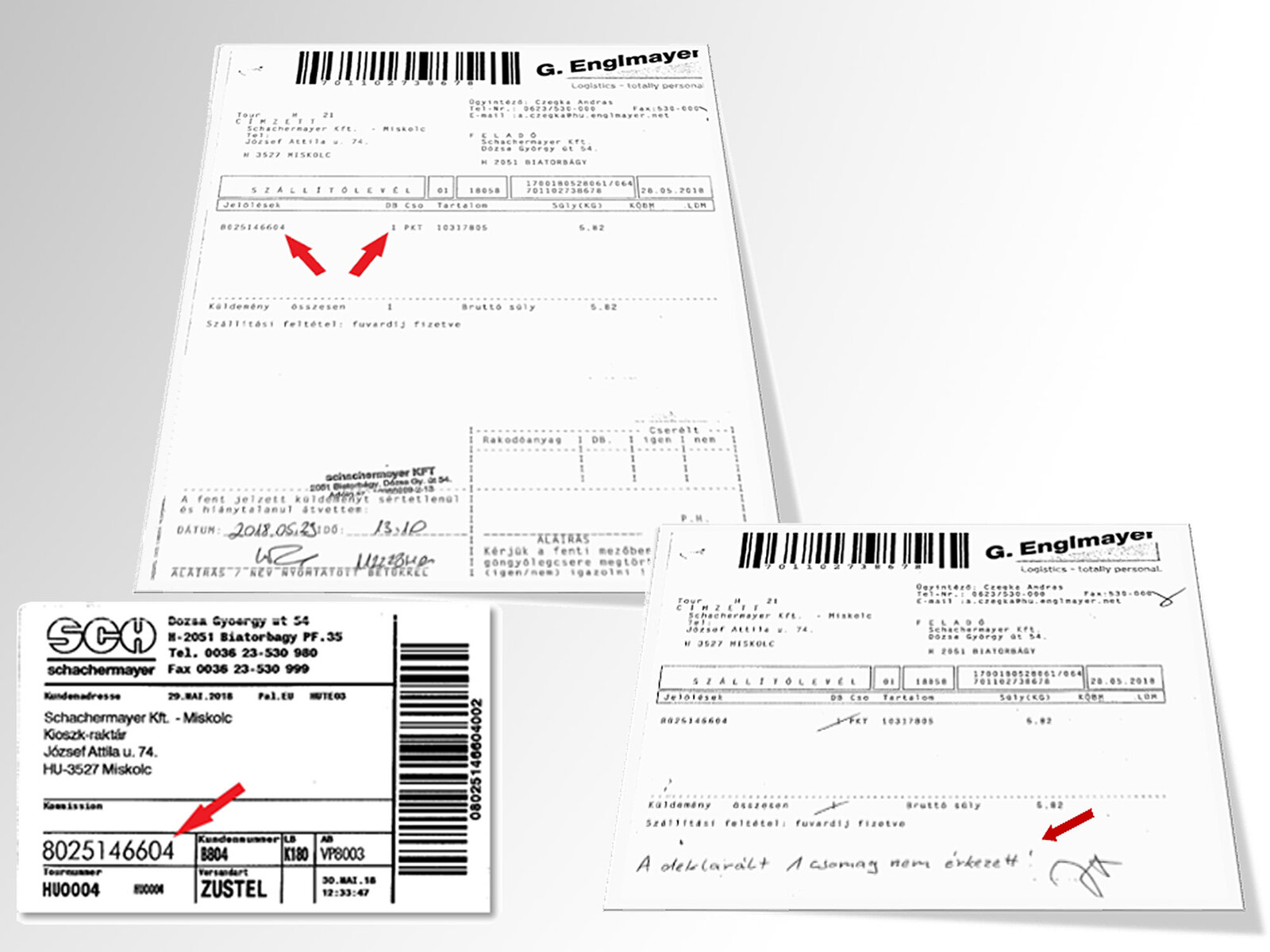 Mind a saját, mind a speditőrünk rendszerében 10 számjegyű szállítólevél számmal azonosítjuk a küldeményeinket. Ezek az azonosítók az összes csomagunkon és a speditőrünk átvételi papírjain is megtalálhatók.