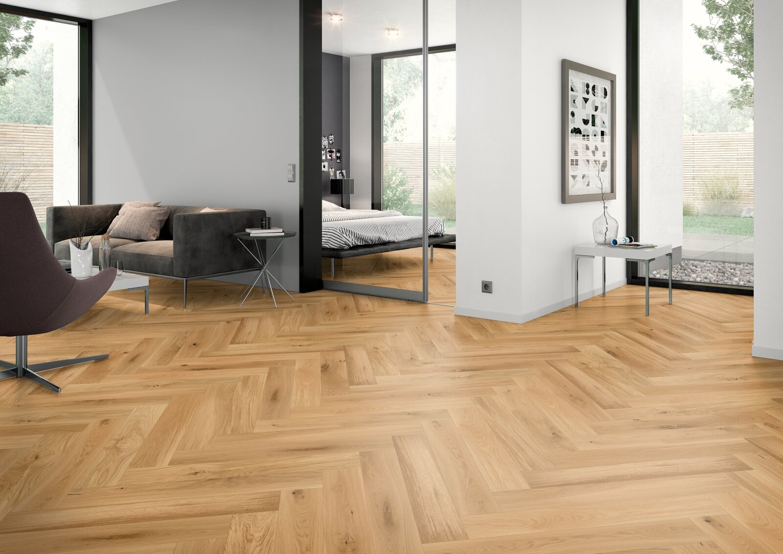 A Schachermayer parketták és burkolatok bemutatósarkában lehetősége lesz nagy méretben, valós felületeken megtekinteni és megtapintani a legnépszerűbb valódi fa parkettákat, vinyl- és designpadlókat. A Padlótrendek 2026 válogatásának köszönhetően olyan, gondosan összeállított portfóliót ismerhet meg, amely a gyakorlatban legkeresettebb színekre, mintázatokra és anyagokra épül, így könnyebbé válik a megfelelő burkolat kiválasztása és ajánlása ügyfelei számára. A helyszínen nemcsak a textúrák és felületkezelések közti különbségeket érzékelheti, hanem azt is megtapasztalhatja, hogyan mutatnak a parketták nagyobb felületen berendezett terekben – akárcsak a Schachermayer Virtuális padlótervezőjében látható enteriőrökben. Ez a bemutató ideális lehetőség arra, hogy valódi, kézzelfogható tapasztalatot gyűjtsön a mai padlótrendekről és a különféle burkolattípusok minőségéről.