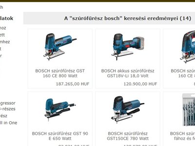 Ha például Bosch és Festool márkájú szúrófűrészekt között keresne, a jövőben lehetőség lesz több márka vagy egyéb szűrési tulajdonság (pl. Volt vagy hasonló) megadására a speciális keresőmezőben (a tölcsér szimbólummal ellátott szerkezetcsoportoknál).