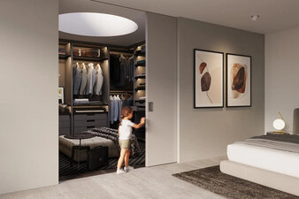 Akadálymentes tolóajtó: Előny a mozgatásban Tolóajtó kényelmesebben és biztonságosabban: Innovatív mágneses lágy zárórendszerével és a 22 N-nél kisebb nyitóerejével a faajtókhoz alkalmas Hawa Junior 1