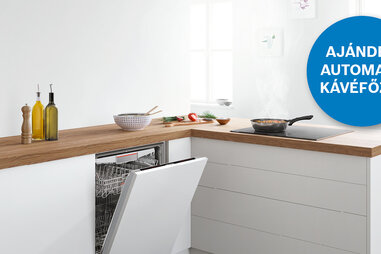 Vásároljon Bosch beépíthető készülékeket – köztük legalább 1 db sütőt, főzőlapot és mosogatógépet – legalább 1.000.000 Ft értékben, és ajándékba adunk egy 220.000 ft értékű** TIS30329RW automata kávéf